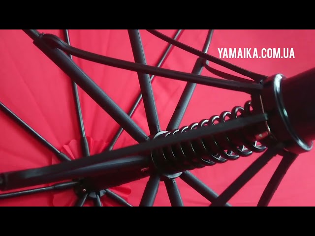 Парасоля-тростина напівавтомат з зручною пластиковою ручкою покритою софт-тач, довжина парасолі 94 см, спиці та відкривний механізм виготовлені зі скловолокна та пластику, металевий стержень.